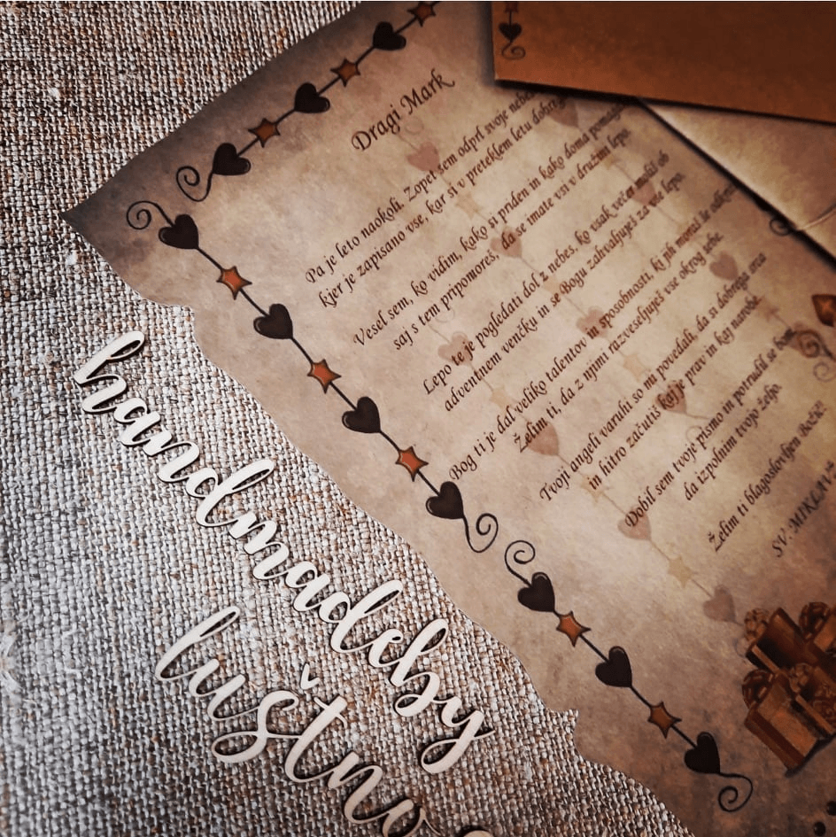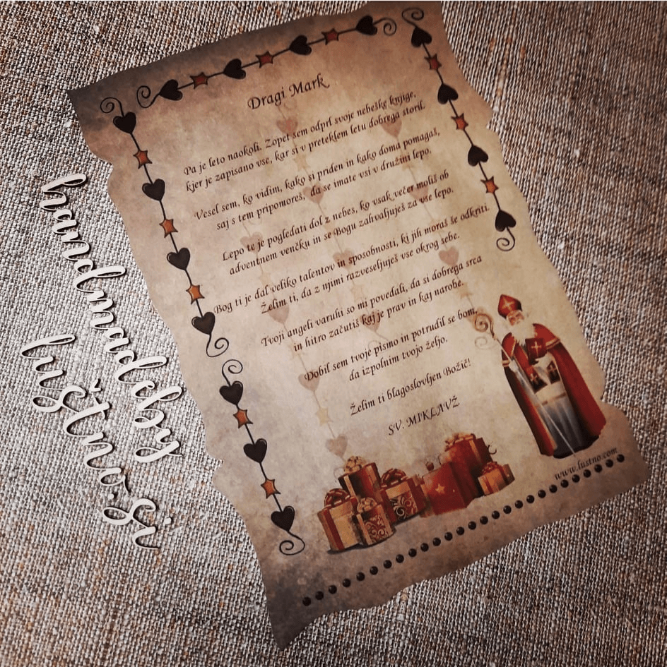Dragi starši pred vami je ročno izdelano personalizirano Miklavževo pismo za vašega otroka.