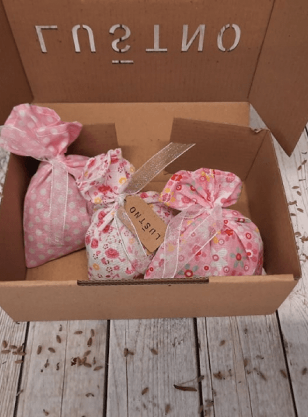Privoščite si popoln vonj sivke v vašem domu. Skrbno izbrani cvetovi ekološke sivke v treh prekrasnih bombažnih mošnjičkih Luštno.