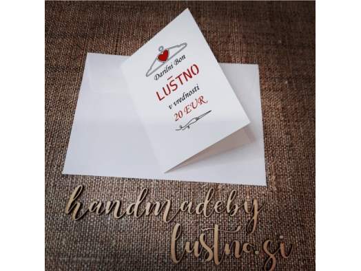 Dolgo je trajalo, da ste me prepričale, da dodam darilne bone. Seveda ne bi bilo to Luštno, če bi bil darilni bon le koda za popust. Tako kupca pričaka darilna čestitka s kodo za darilni bon.