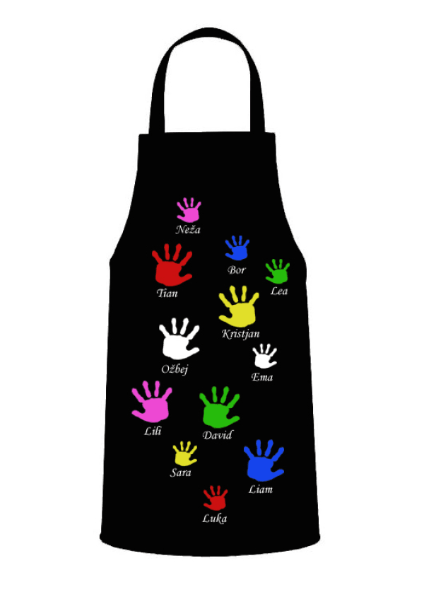 Na predpasniku so prikupne rokice z imeni otrok v skupini in imenom vzojitelja-ice, učitelja-ice.